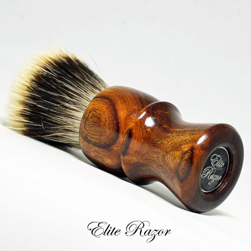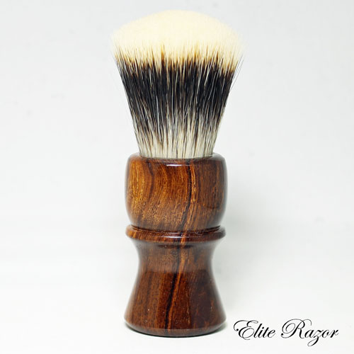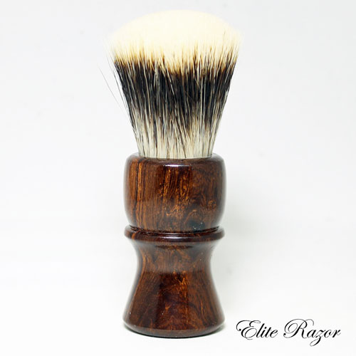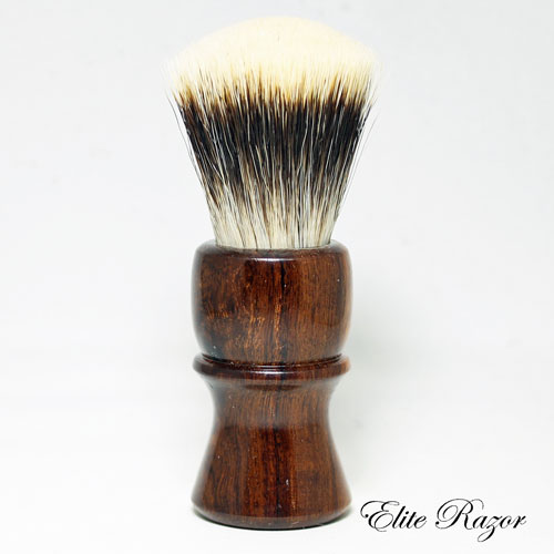 This brush features a handcrafted handle by Robert Quinn from Desert Ironwood which only grows in the washes and valleys of the Sonoran Desert below 2,500 foot elevation. Desert Ironwood is very hard and dense. It actually sinks in water. Tradition has it that carvings made from the Desert Ironwood bring good fortune and long life. Desert Ironwood reaches maturity at 2000 years, more or less. It was originally used by the Seri Native Americans of Mexico for tool handles. Today the Seri Indians make carvings of desert plants and animals from the ironwood. Desert Ironwood was the original choice of material for the grips of the Colt .45 handgun.