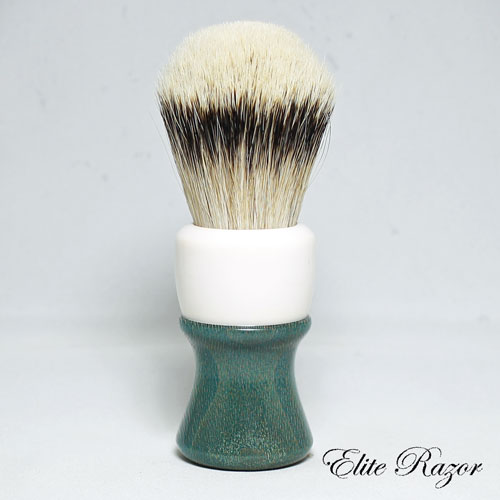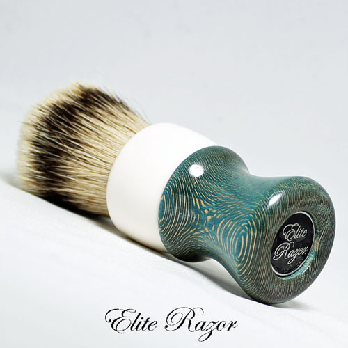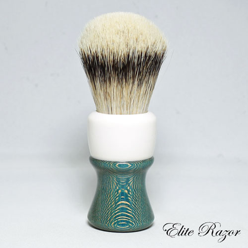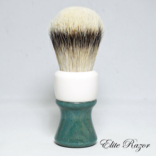 The handle is made from dyed Lacewood, which is believed to be native to Queensland, Australia, specifically in the northern coastal areas. Lacewood is pale pink to light reddish-brown in color, with a silver grain that gives the wood a silvery sheen. With age, the heartwood matures to a brownish color. Its conspicuous, large rays give it an appearance similar to oak. The wood is straight-grained with a moderately coarse to even texture. A decorative wood, Lacewood is popular for ornamental furniture inlays. It can be peeled or sliced to produce decorative veneers, hence its popularity for paneling and in furniture and cabinet making.
