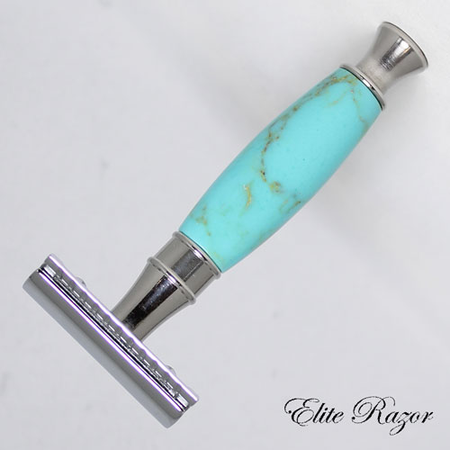 This handle is made from Kingman Turquoise, which is the one of the official birth stones for the month of December as adopted by the American National Association of Jewelers in 1912. For centuries, the most valuable turquoise came from Iran (Persia) but today some specimens mined in the southwestern United States, specifically turquoise from the famous Kingman mines, compete with it. The Aztecs mined turquoise in an area now known as New Mexico and a significant amount of turquoise comes from Arizona, California and Nevada. Turquoise is sacred to many Native American’s and was carved in the shape of animals and birds. These carvings were placed in the Indians tombs to attract beneficial spirits and to guard the dead. Turquoise was also used by medicine men for healing and by warriors who fixed turquoise to the end of their bows to insure accurate shots.