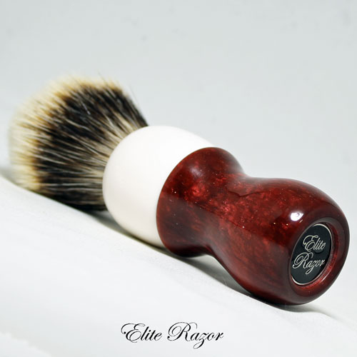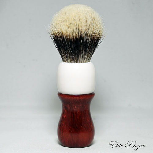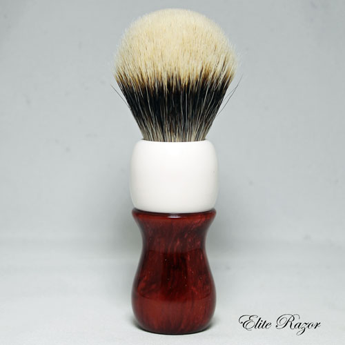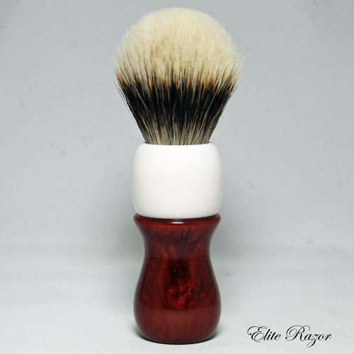 This brush features a handcrafted handle by Robert Quinn from a poured Neo-Resinate. The use of resins in brush making has dramatically expanded the range of colors and stylings that are available. The Neo-Resinate is poured into molds with either contrasting or complimentary colors and cured in a pressure pot to create the turning material.